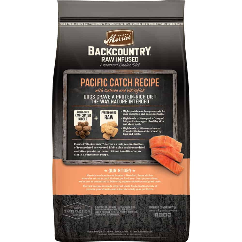 - Merrick Backcountry Raw Infused Grain Free Dog Food, Pacific Catch Recipe, Freeze Dried Dog Food