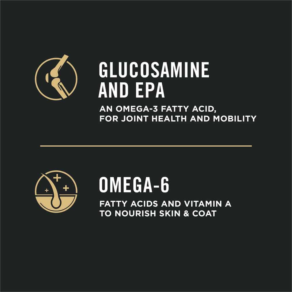 • Glucosamine and EPA, an omega-3 fatty acid, for joint health and mobility.