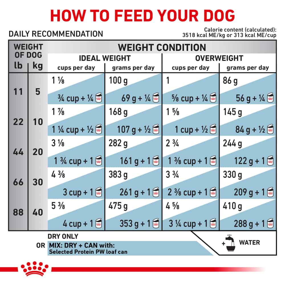 - Optimal feeding amounts may vary according to your dog's activity level and environment.